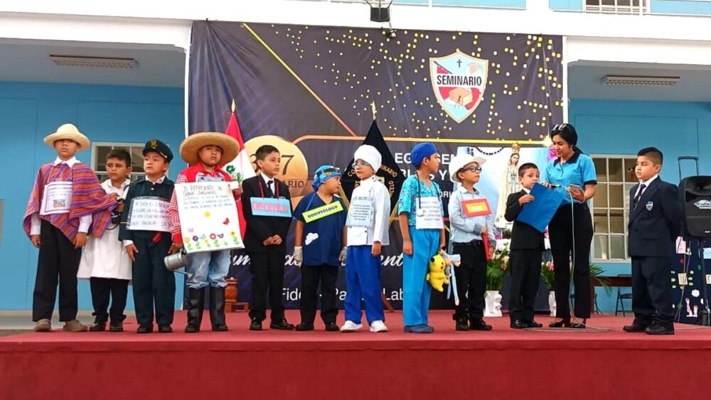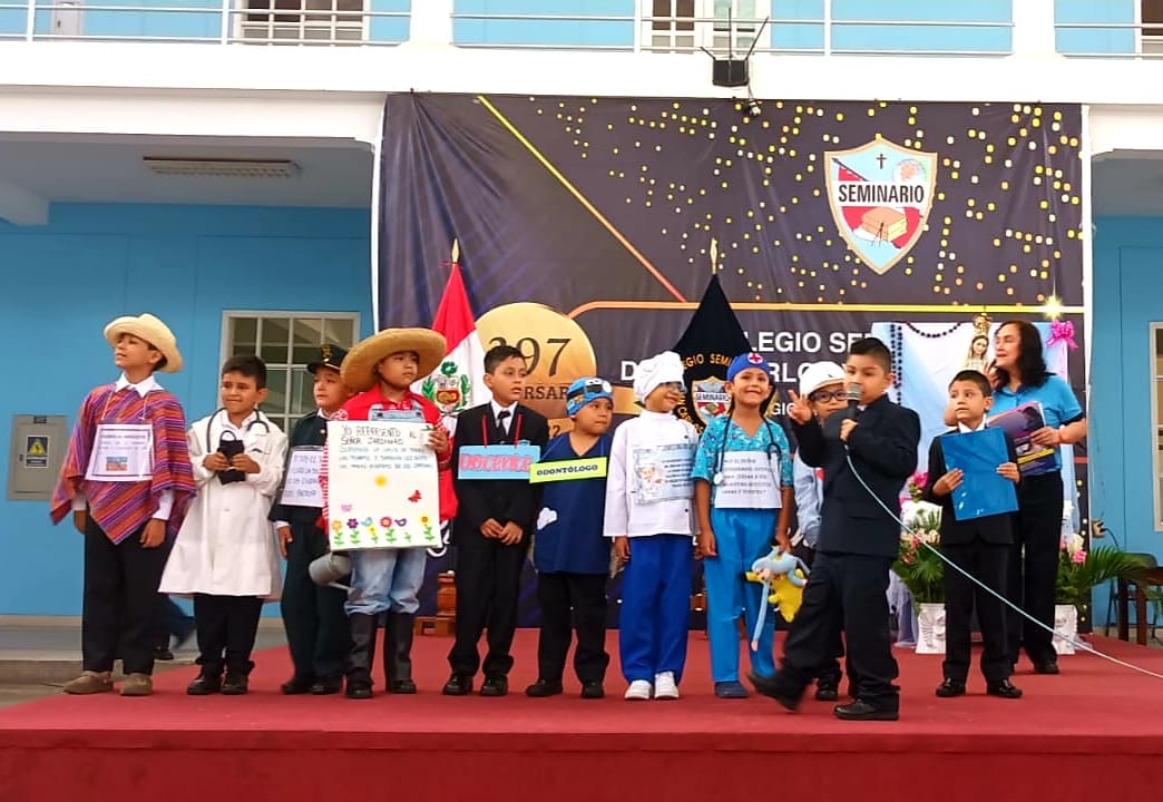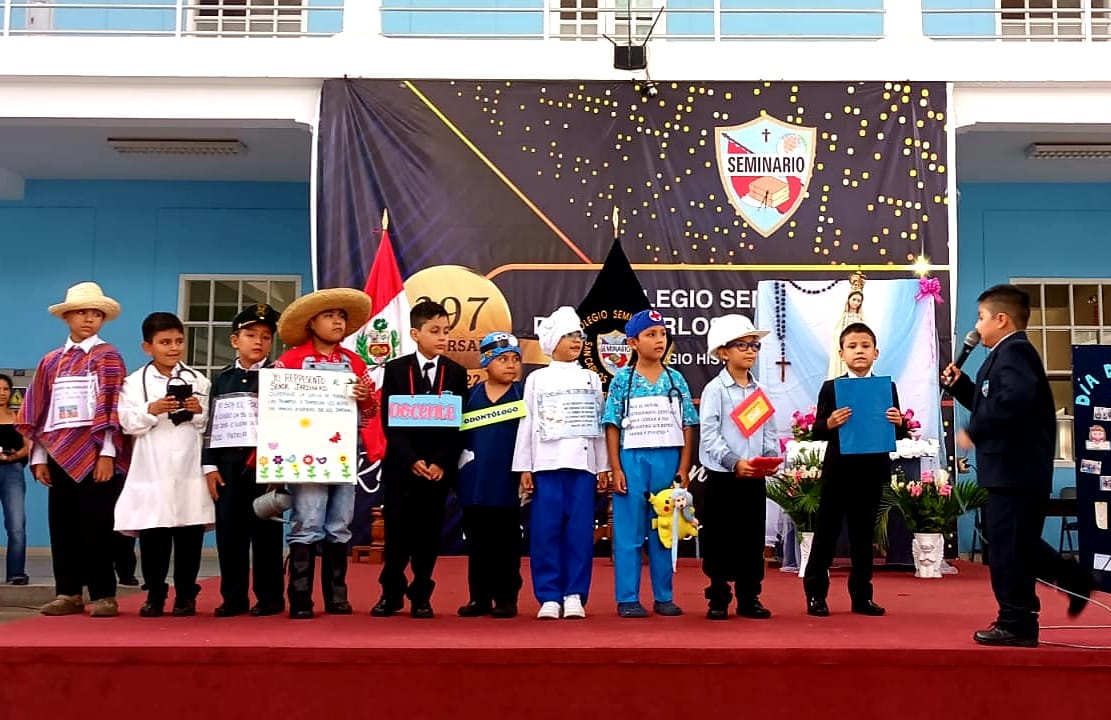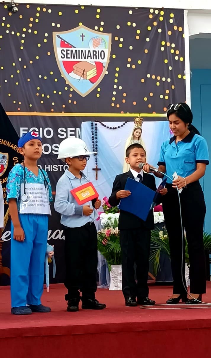 El 2 de mayo, niños del 2º B de Primaria, asesorados por la docente Vanessa Balcázar, en la celebración del Día del Trabajador, presentaron su saludo a todas las personas que trabajan, en las distintas actividades humanas.