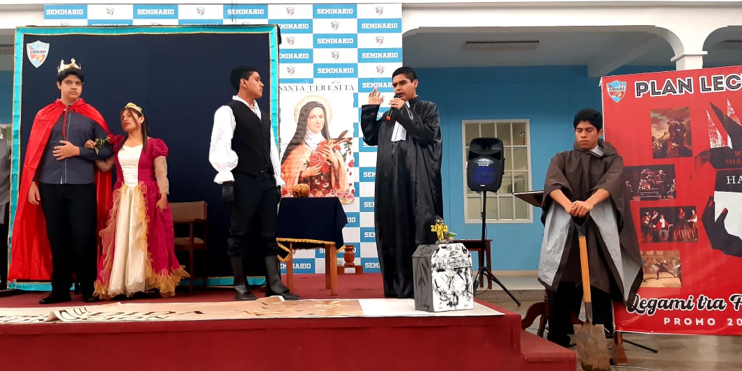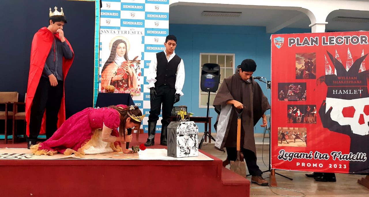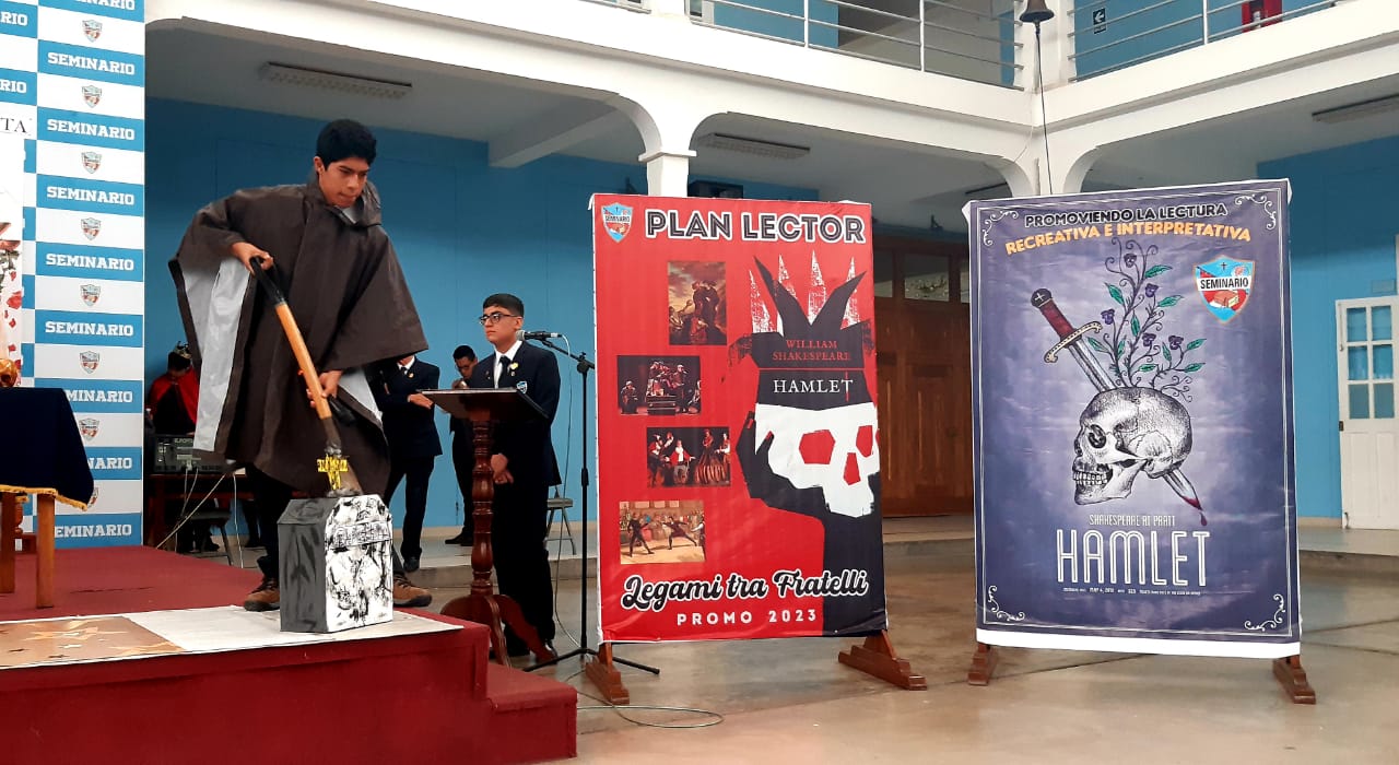 El 7 de setiembre, estudiantes de 5º A de secundaria, asesorados por el docente Cesar Tufinio Quito, compartieron la obra literaria “Hamlet” de William Shakespeare.
