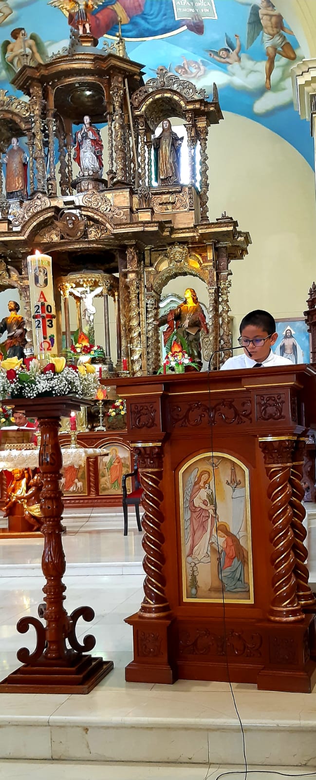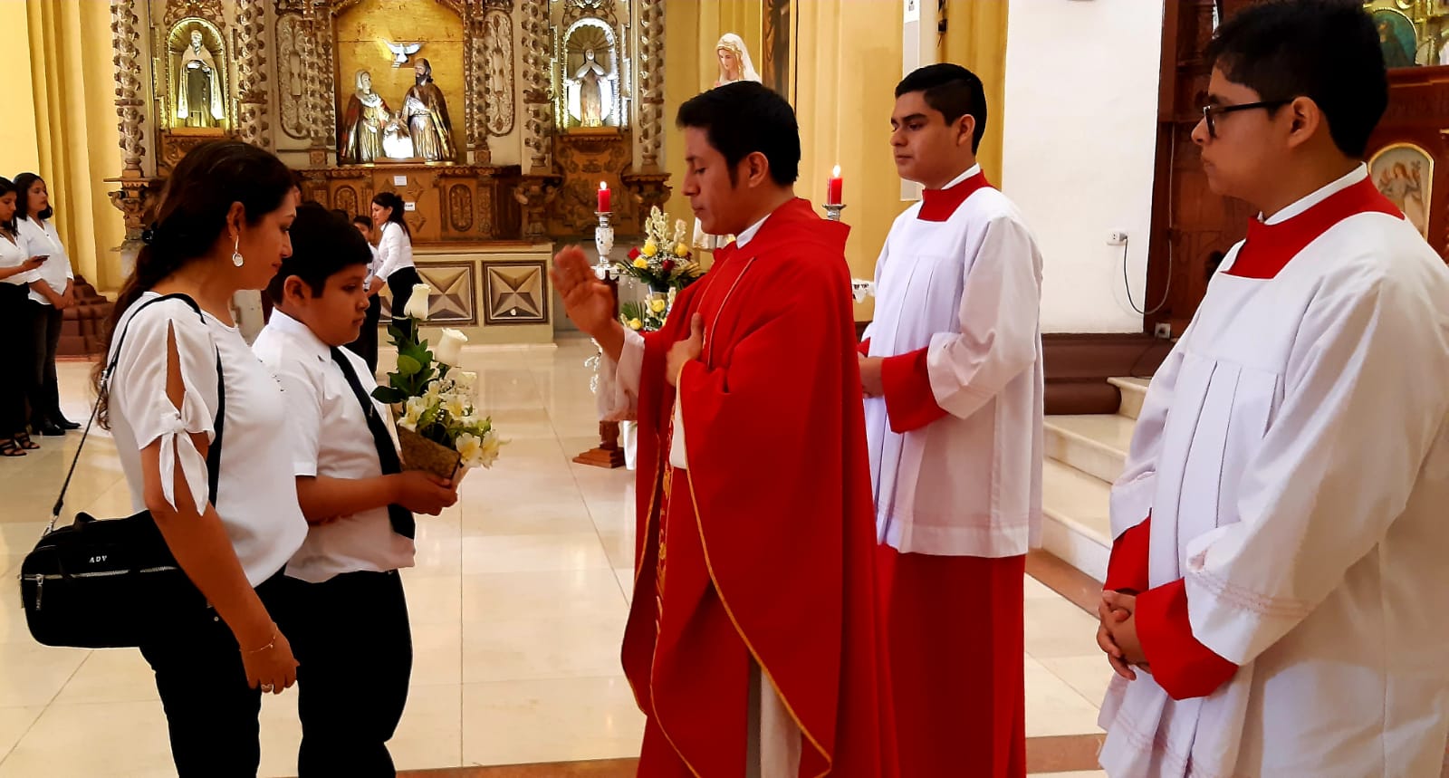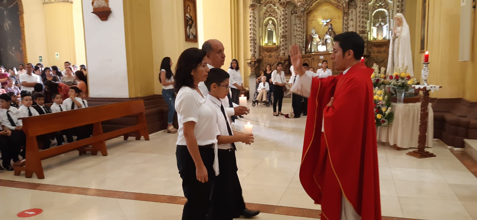 La Santa Misa, fue presidida por R.P. José Isla Ascurra, ex alumno seminarista, ahora capellán del Colegio. Se vivió intensamente la fiesta de Pentecostés, desde el inicio, durante la Comunión y la bendición final. Fueron responsables de la organización el 4º A y 4º B de Primaria, con el asesoramiento y apoyo de las docentes Melissa Contreras y Carmen Rosa Alfaro y de los padres de familia. Acompañó con los cánticos el coro seminarista, dirigido por la Prof. Carla Gonzales.