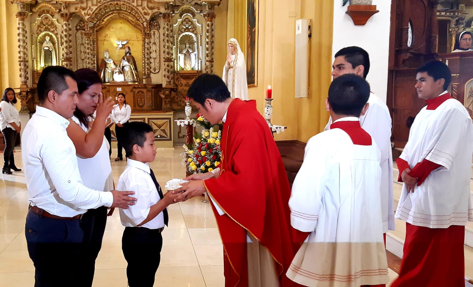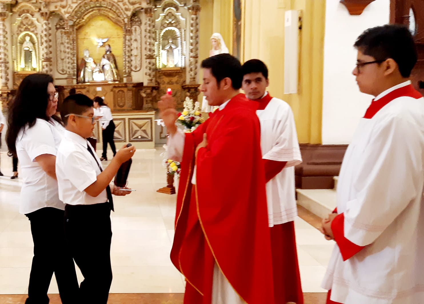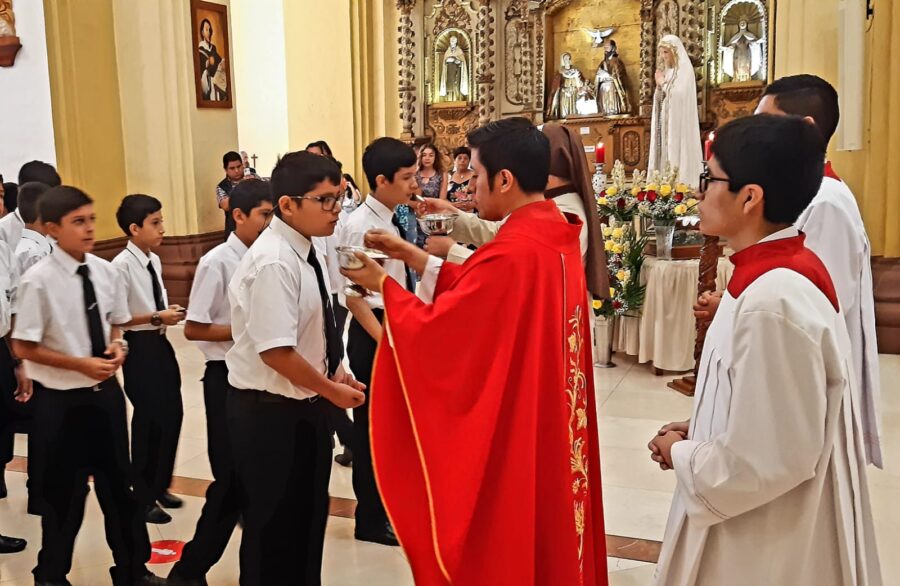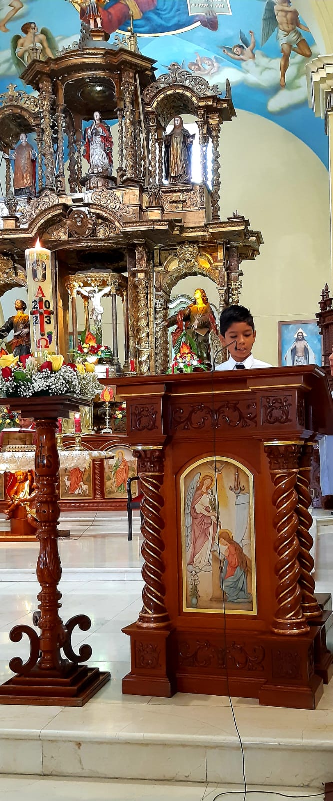 La Santa Misa, fue presidida por R.P. José Isla Ascurra, ex alumno seminarista, ahora capellán del Colegio. Se vivió intensamente la fiesta de Pentecostés, desde el inicio, durante la Comunión y la bendición final. Fueron responsables de la organización el 4º A y 4º B de Primaria, con el asesoramiento y apoyo de las docentes Melissa Contreras y Carmen Rosa Alfaro y de los padres de familia. Acompañó con los cánticos el coro seminarista, dirigido por la Prof. Carla Gonzales.