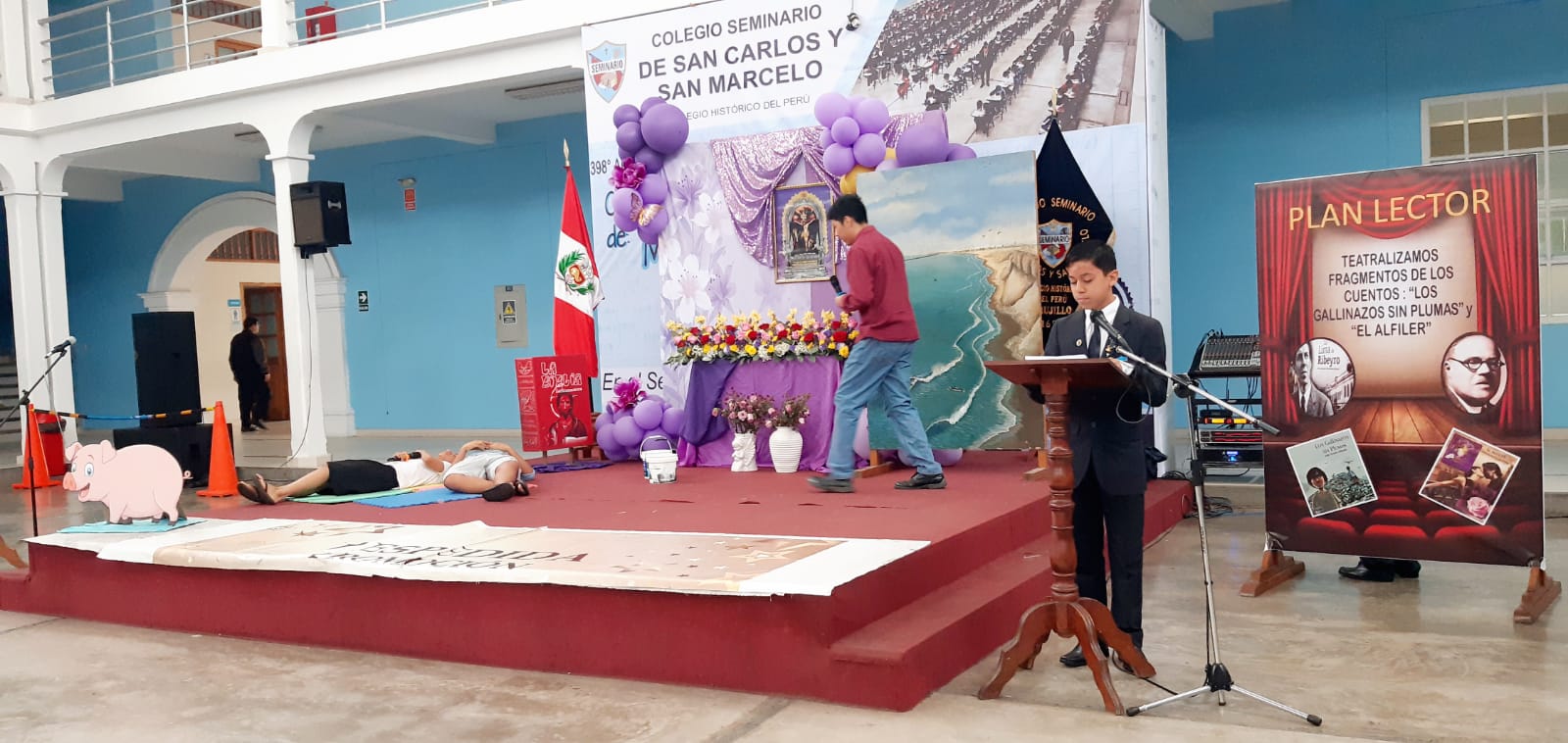 Participaron en el cuento “Gallinazos sin Pluma “: Ruidías Vega Gabriel Omar, Montiel Ramírez Juan Manuel, Montano Ávila Xavi Gerard, Mayta Amador Alessandro Joaquín, Valladares Castro Iker Jarzinho En el cuento “El alfiler “, participaron los estudiantes, Valderrama Mejía Luis Santiago, Paredes Chuyes Flavio, Carranza Rodríguez Manuel Marcelo. De esta manera, los estudiantes logran aprendizajes significativos, que contribuyen a un mejor conocimiento de conceptos y hechos.