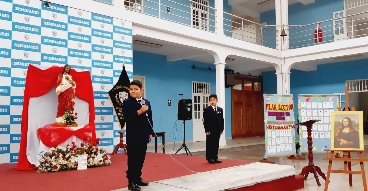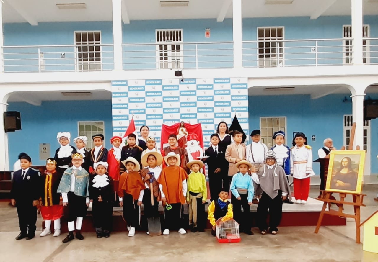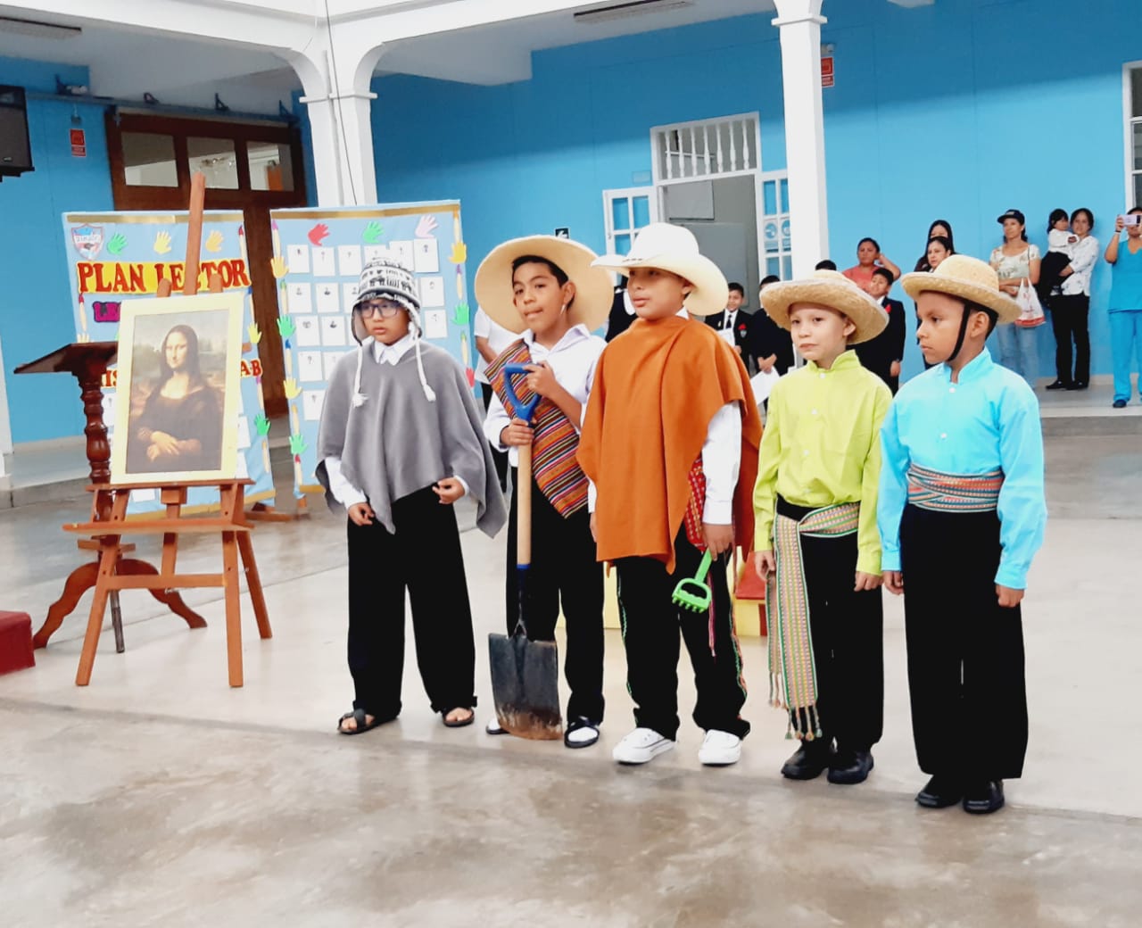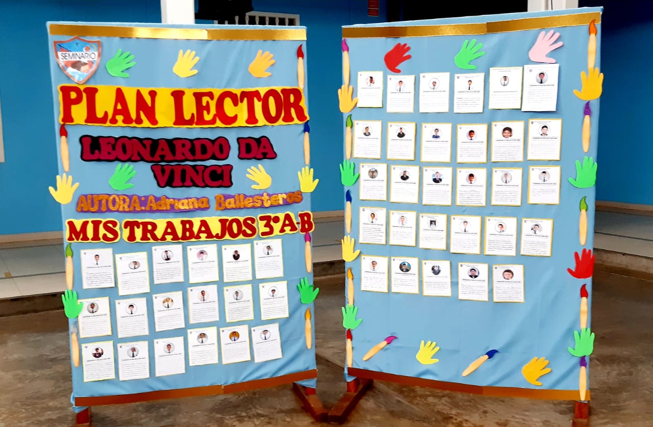 Los niños de 3º A y 3º B de Primaria, asesorados por las docentes Fany Echevarría Narro y María Abanto Rosas, en el marco del desarrollo del proyecto “Jueves literario” compartieron la obra Leonardo Da Vinci de Adriana Ballesteros.
